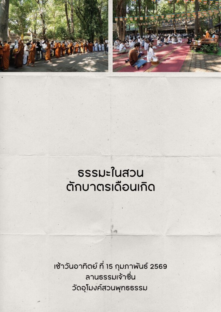จึงขอเลื่อนกิจกรรมธรรมะในสวน เป็นวันอาทิตย์ที่ 15 กุมภาพันธ์ 2569
