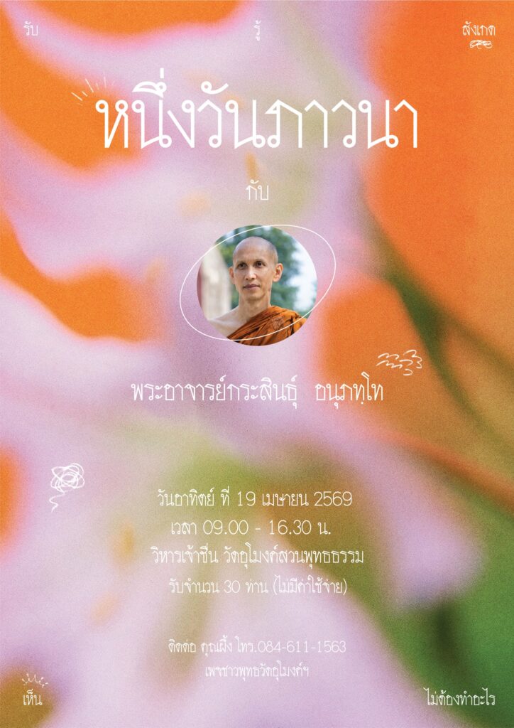 13.00-15.00. น. ปฏิบัติภาวนาร่วมกัน นำภาวนา : พระอาจารย์กระสินธุ์ อนุภัทโท